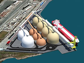 The developers of the bulk shipping terminal proposed for Oakland, Terminal Logistics Solutions, claim that they will prevent coal pollution. Their representative, W.G. Claytor, writes, “The Oakland terminal would hold the coal in encapsulated domes after arriving in covered freight cars, and then moving through fully enclosed conveyers out to covered ships.” There’s a picture of the covered freight cars and domes that would supposedly hold coal.