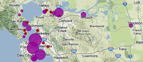 To create a map of ammonia discharges to the Bay, Baykeeper used information from self-monitoring reports submitted by the treatment plants, and made available by the State Water Board. Not all treatment plants are required to report their ammonia discharges, making it difficult to determine how much of the pollutant is released into the aquatic environment. Based on the numbers available, the daily ammonia load from all local wastewater treatment plants is probably around 40,000 kilograms, or about 90,000 pounds, per day.