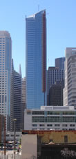 For the record, here are Robert’s answers to the questions above: Clipper Cove is named for the Pan American Clippers, a fleet of luxury floating airplanes that took off and landed in the cove’s waters from 1939 to 1941. San Francisco’s tilted skyscraper, the Millennium Tower, has a distinctive triangular top, shown in the photo below. And harbor seals often hang out on a small Yerba Buena Island beach facing the San Francisco skyline.