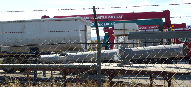 Oldcastle is the largest precast concrete manufacturer in the US and its Pleasanton facility is one of 80 Oldcastle production and sales sites nationwide. The company makes large concrete products that include building columns, walls, pipes, and linings for trenches and culverts. The products are cast in reusable molds at the Oldcastle facility, then transported to construction sites and lifted into place.