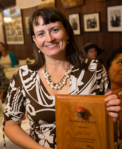 Baykeeper’s Blue Rivet Award honors heroes who have made a significant difference for San Francisco Bay. The Blue Rivet Award includes a plaque with an actual Golden Gate Bridge rivet representing individual efforts by the many community members and businesses that join together to create a thriving, healthy San Francisco Bay. The awards are presented during an annual dinner celebration of Baykeeper’s community of support.