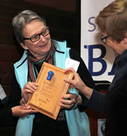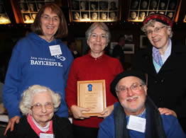 Citizens Committee to Complete the Refuge (CCCR) is an all-volunteer community group that has tirelessly worked to protect and expand San Francisco Bay’s wetlands and habitat for endangered species. The group’s name reflects their dedication to bringing more Bay habitat under the protection of the Don Edwards National Wildlife Refuge. Baykeeper is very proud to have partnered with Citizens Committee to Complete the Refuge on efforts that have put on hold plans for unwise development along the Bay’s shoreline. The Citizens Committee recently helped stop a massive development project slated for Newark tidal marshes. We especially honor Citizens Committee to Complete the Refuge for its many years of courageous activism to protect the former Cargill salt ponds in South Bay from development. The Committee’s work is even more impressive because this small, local, all-volunteer group has influenced federal, state, and local policies that have an impact on San Francisco Bay’s wetlands. Accepting the Blue Rivet Award, left to right, top: Eileen McLaughlin, Gail Raabe, Ruth Vose. Bottom, CCCR Founder Florence LaRiviere, Arthur Feinstein.