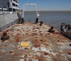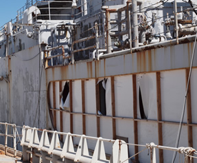 Baykeeper recently conducted our annual inspection of the ships to see how the cleanup is proceeding, along with representatives from the Regional Water Resources Control Board and one of our partners in the settlement, Natural Resources Defense Council. This is one of the few times non-military personnel are allowed on the ships. We spent five hours inspecting the ships and being briefed by officials from the Maritime Administration, the federal agency responsible for the cleanup.