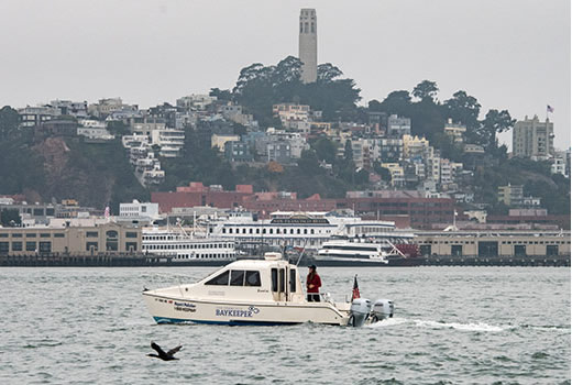 When oil or another toxic substance is spilled in the Bay, Baykeeper takes our boat to the spill site. We monitor at a careful distance to ensure that authorities tasked with response and cleanup are doing everything possible to protect the Bay, wildlife and shorelines. And recently, our scientists, along with our partners at the San Francisco Estuary Institute, also used the Baykeeper boat to investigate harmful levels of microscopic particles of plastic in the Bay’s water.